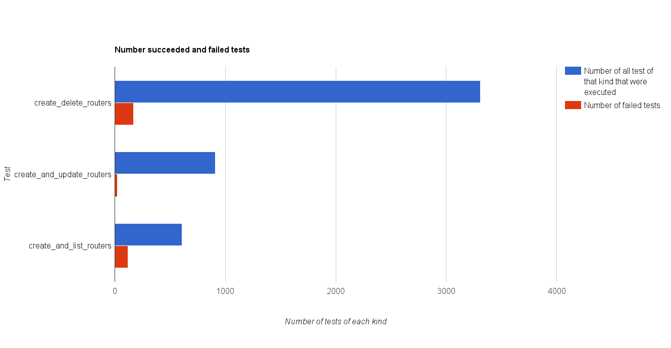 The most important results are provided by test_create_delete_routers test, as it allows to catch possible race conditions during creation/deletion of HA routers, HA networks and HA interfaces. There are already several known bugs related to this which have been fixed in upstream. Some of them: