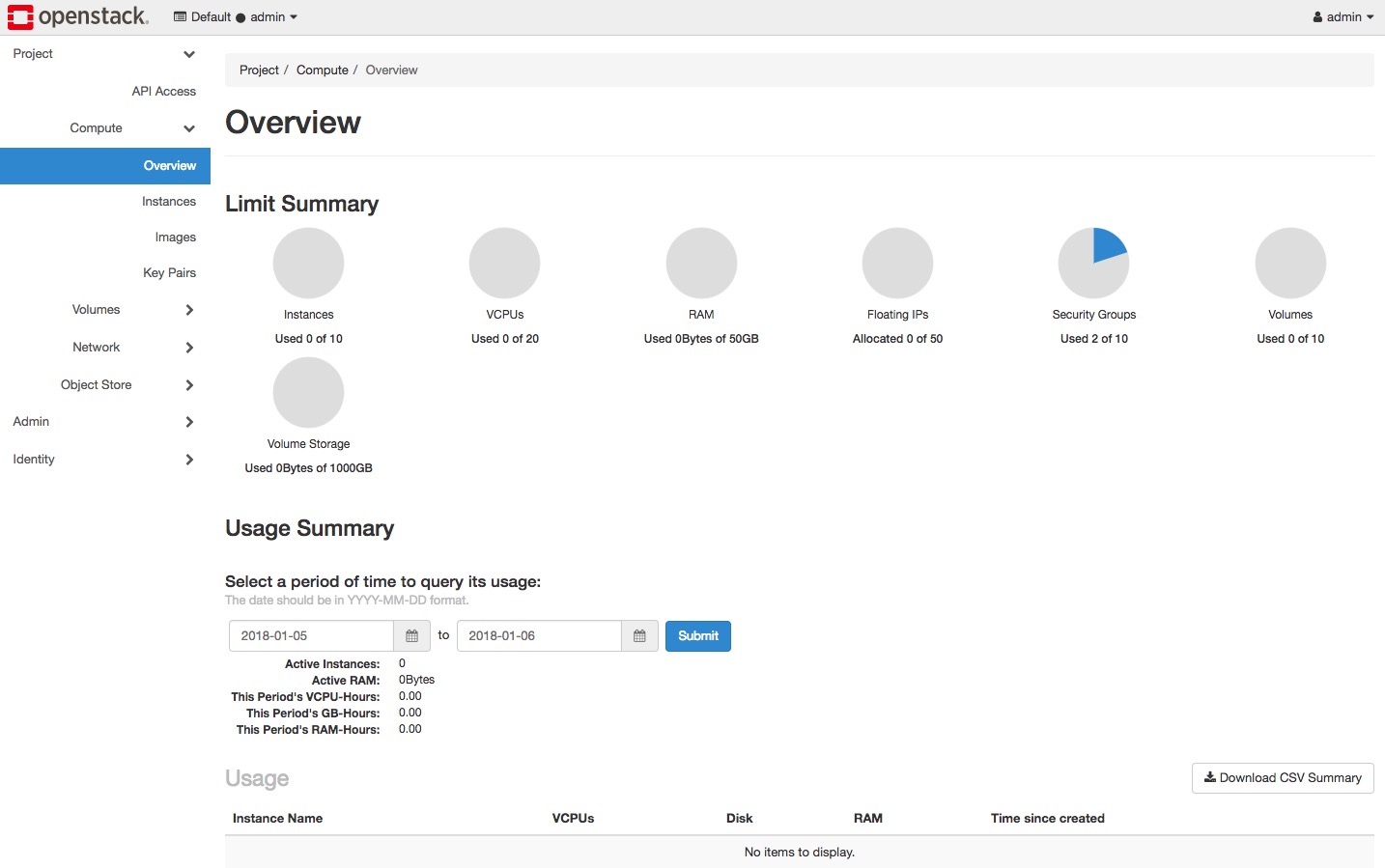 OpenStack dashboard — Admin tab¶