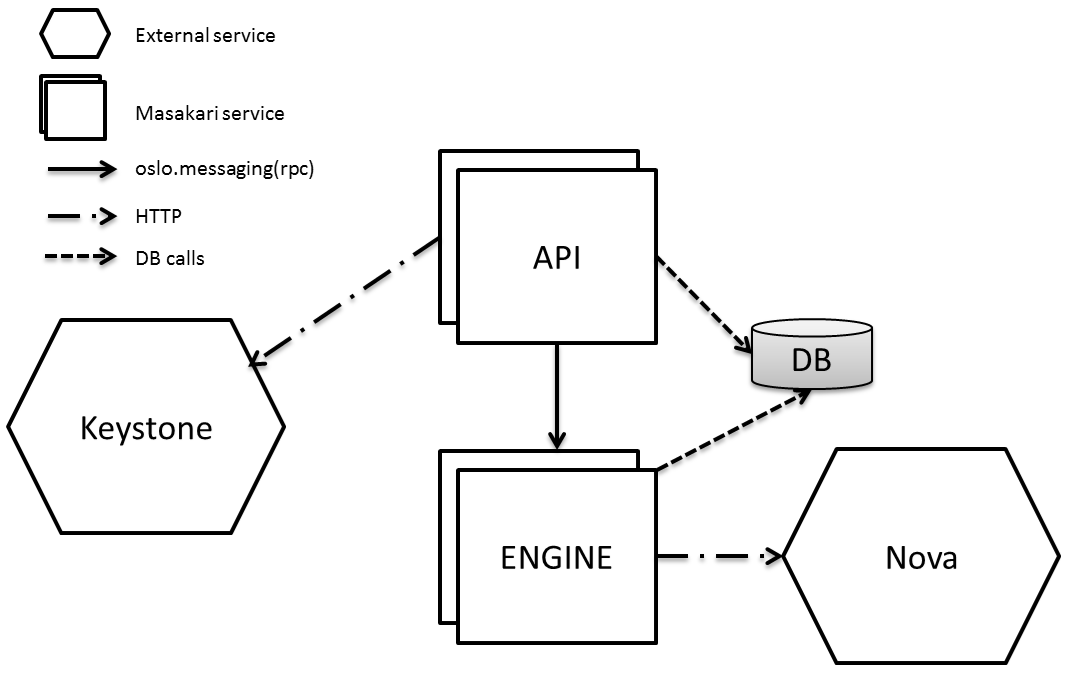 Masakari comprises of two services api and engine, each performing different functions. The user-facing interface is a REST API, while internally Masakari communicates via an RPC message passing mechanism.
