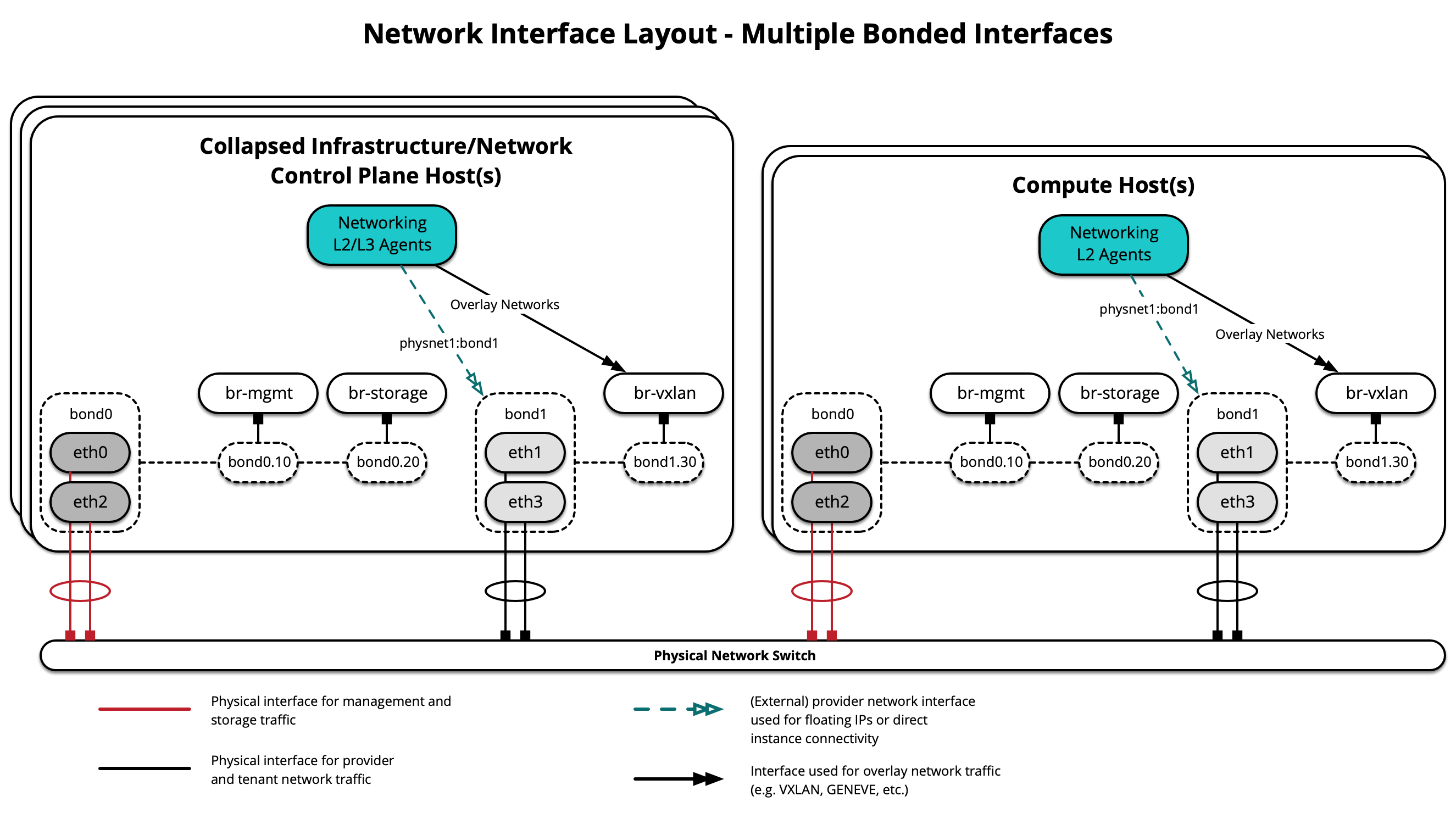 The following diagram demonstrates hosts using multiple interfaces for OVS and LinuxBridge Scenario: