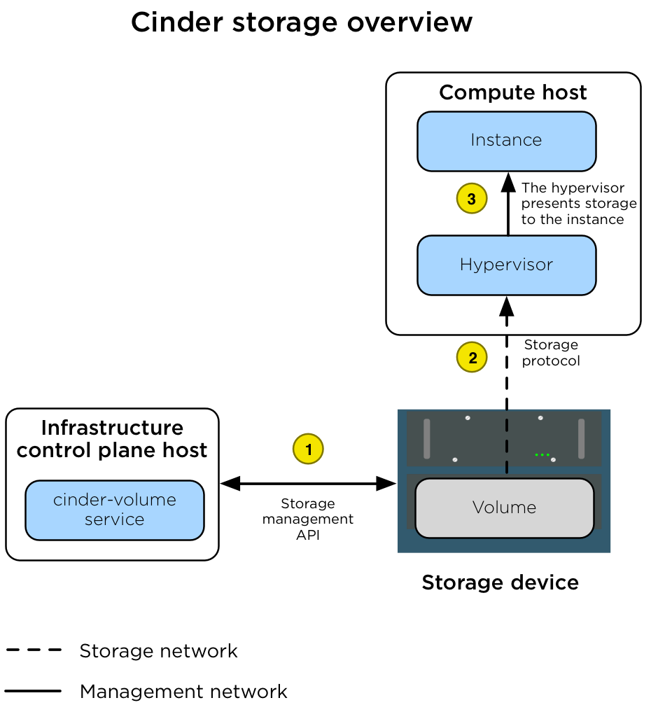 management network (br-mgmt). Instances are connected to the volumes via
