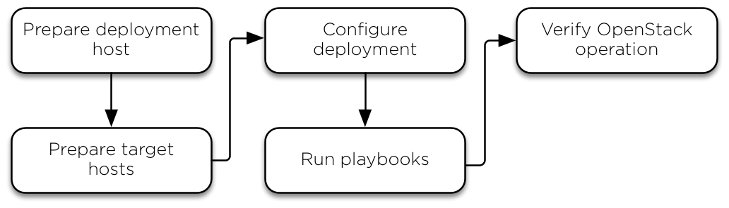 The following diagram shows the general workflow of an OpenStack-Ansible installation.