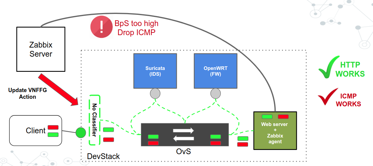 This guide walks you through a specific usecase in which you can leverage the Zabbix monitoring software to create a dynamic VNF Forwarding Graph (VNFFG) or Service Function Chaining (SFC). You can check out the video presentation here [1] and slides here [2] to see how to do it in action.