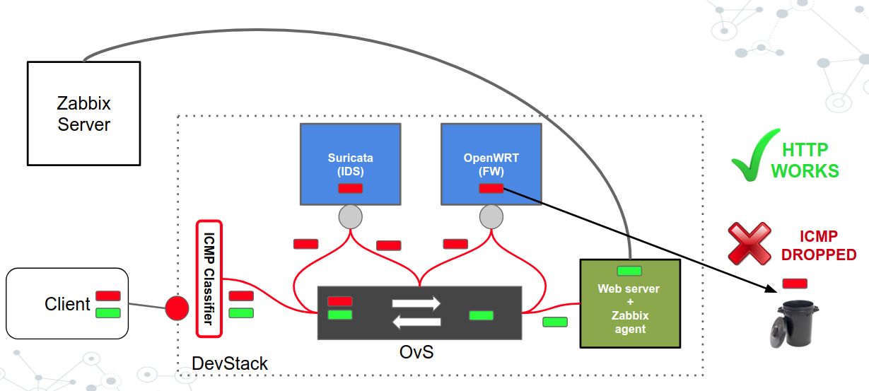 SFC with ICMP classifier (HTTP works, ICMP dropped)