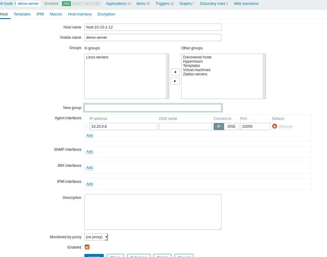 Register the devstack machine (the host that we want to monitor and it should have installed the Zabbix agent, see step 3)
